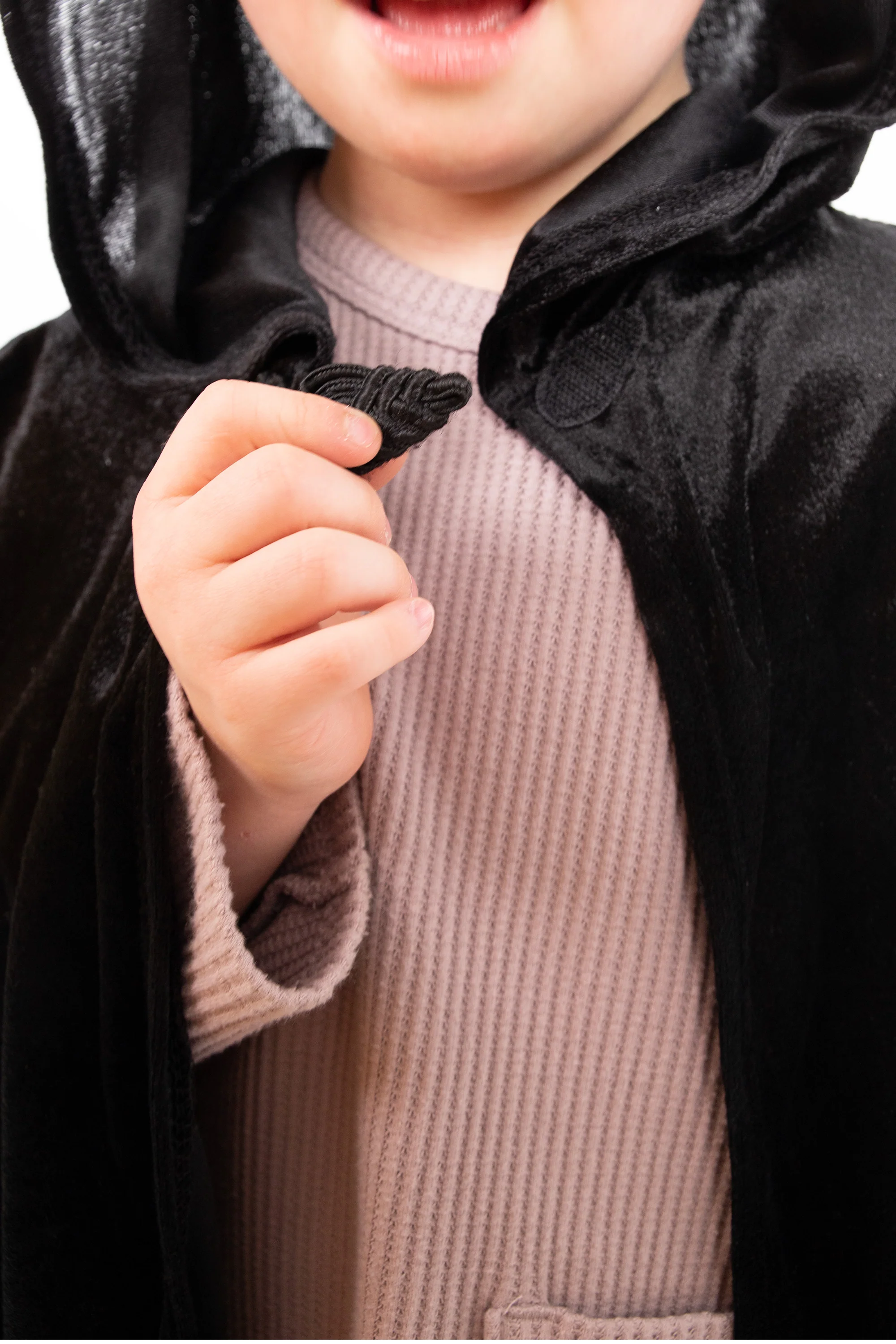 This black cloak can help your little one magically transform into a nobleman, powerful wizard or their favorite villain!