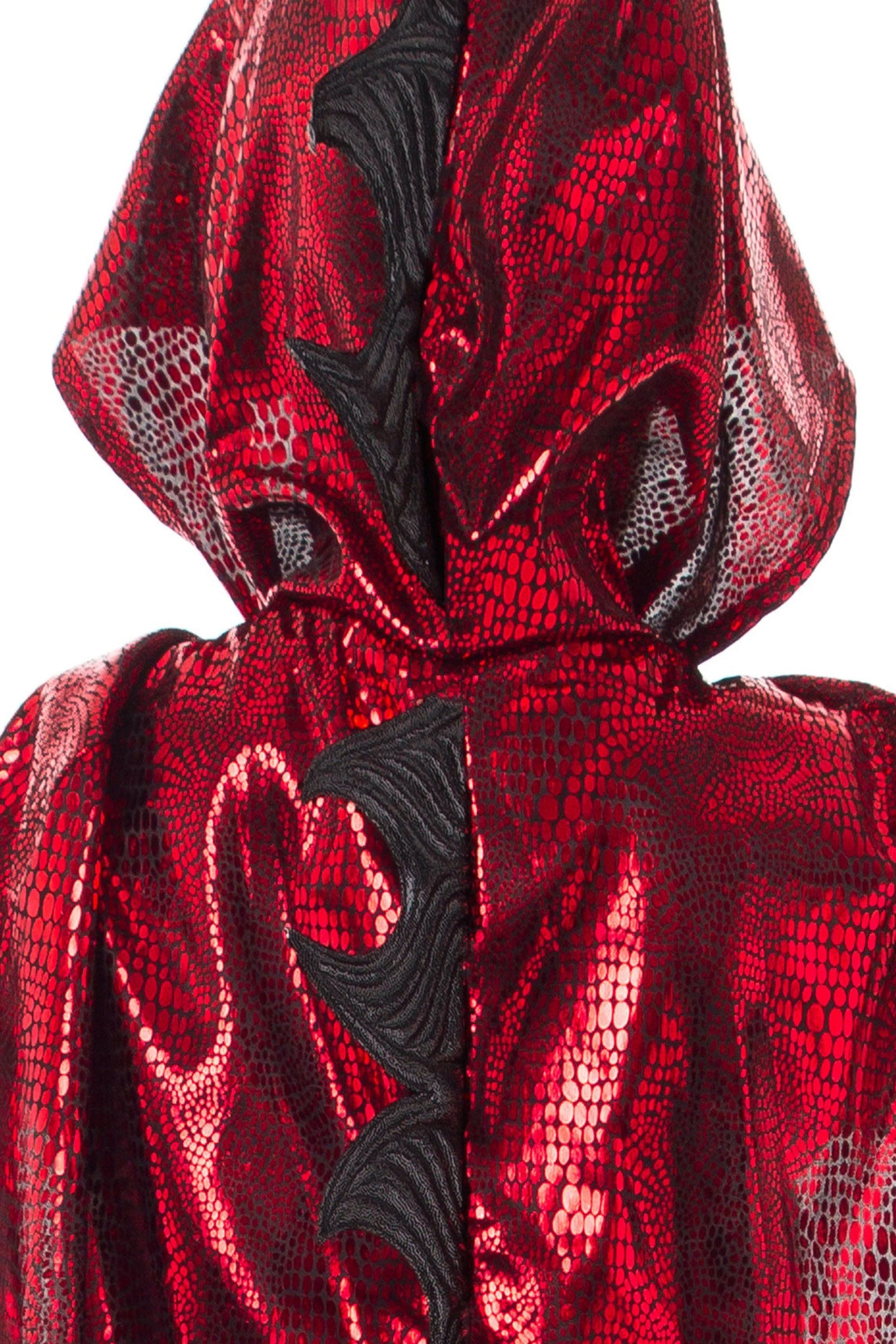 - Red cloak with black dragon scale print